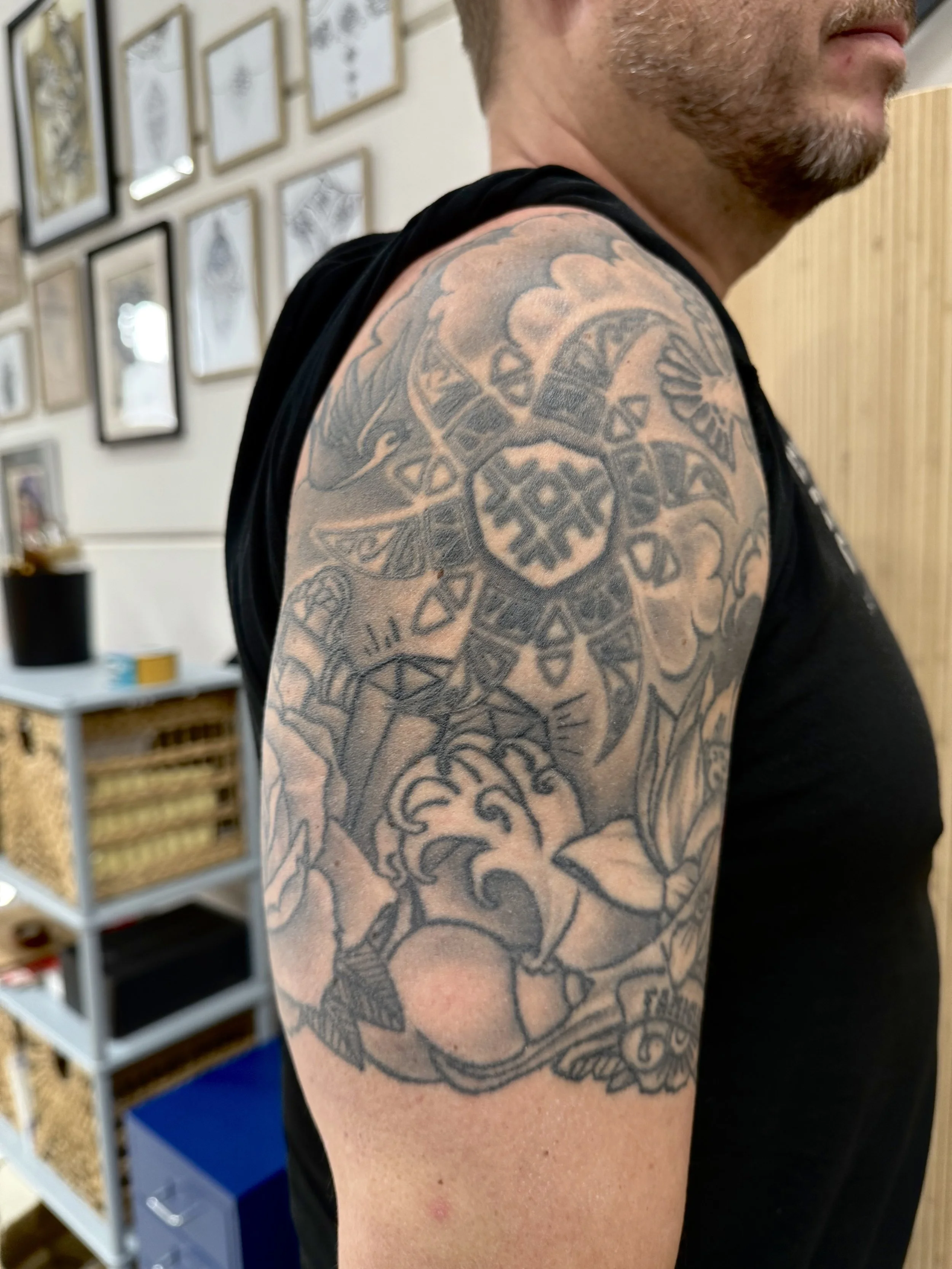 Cover-up tattoos are a specialized art form designed to conceal or transform existing tattoos. Whether your old tattoo no longer fits your aesthetic, carries unwanted memories, or simply hasn't aged well, a cover-up can breathe new life into your ink. At The Peacock Throne, we understand the personal journey behind every tattoo, making our approach to cover-ups both thoughtful and creative. We also offer cover-up tattoo services for scars.